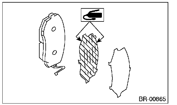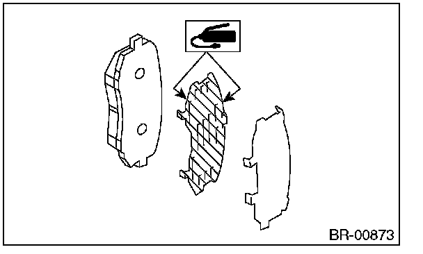 3) Apply a thin coat of Molykote AS880N (Part No. K0777YA010) or grease contained in the pad kit to both surfaces of the pad and inner shim.