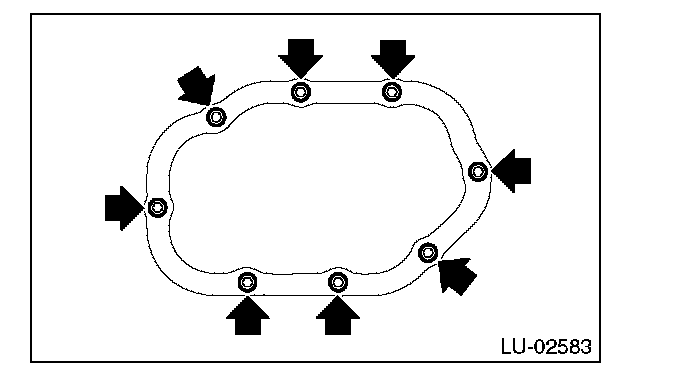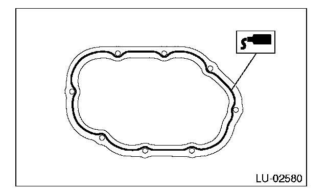 25) Apply liquid gasket to the mating surfaces of oil pan, and install the oil pan.
