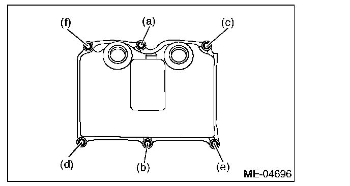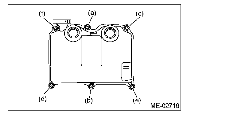 (2) Temporarily tighten the rocker cover bolts in alphabetical order shown in the figure, and then tighten to specified torque in alphabetical order in two steps.