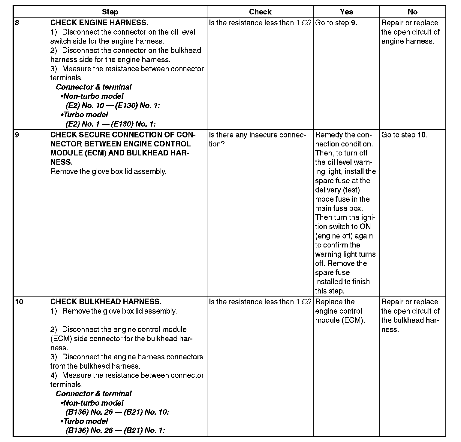 INSPECTION WHILE OIL LEVEL SWITCH WARNING LIGHT IS ON