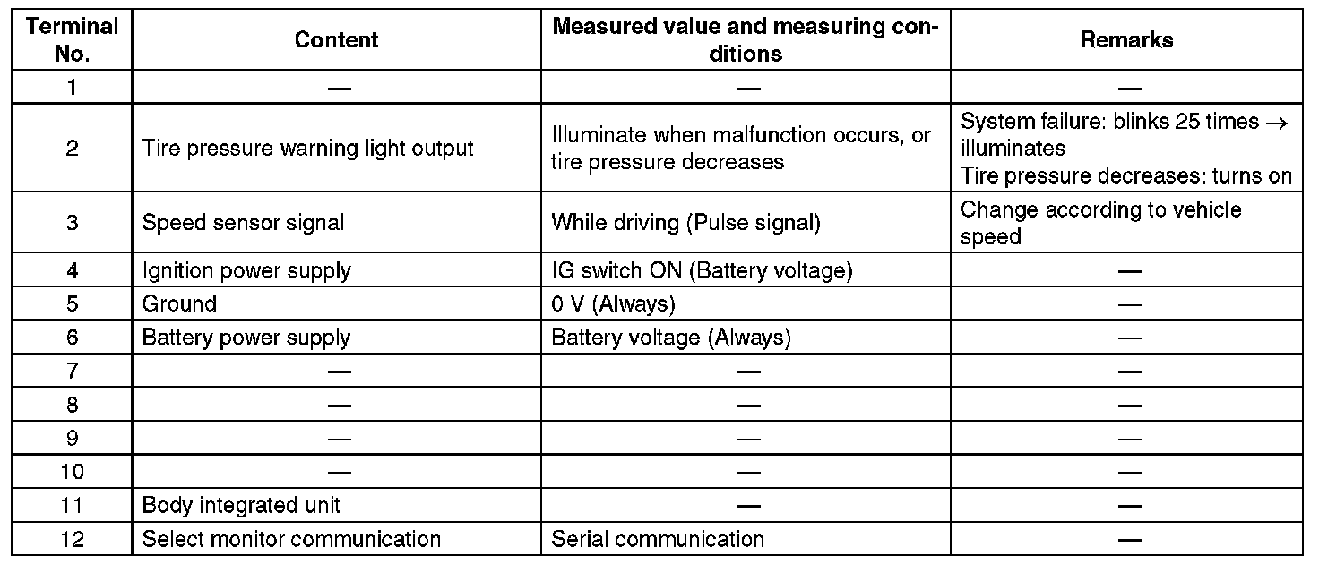 Pinout Values and Diagnostic Parameters