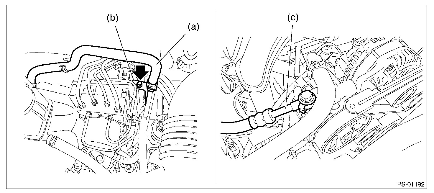 (3) Remove the hose (c) from power steering pump.
