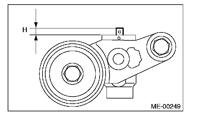 4) Measure the amount of adjuster rod protrusion "H" from the end surface of the cylinder. If it is not within specifications, replace the automatic belt tension adjuster assembly with a new part.