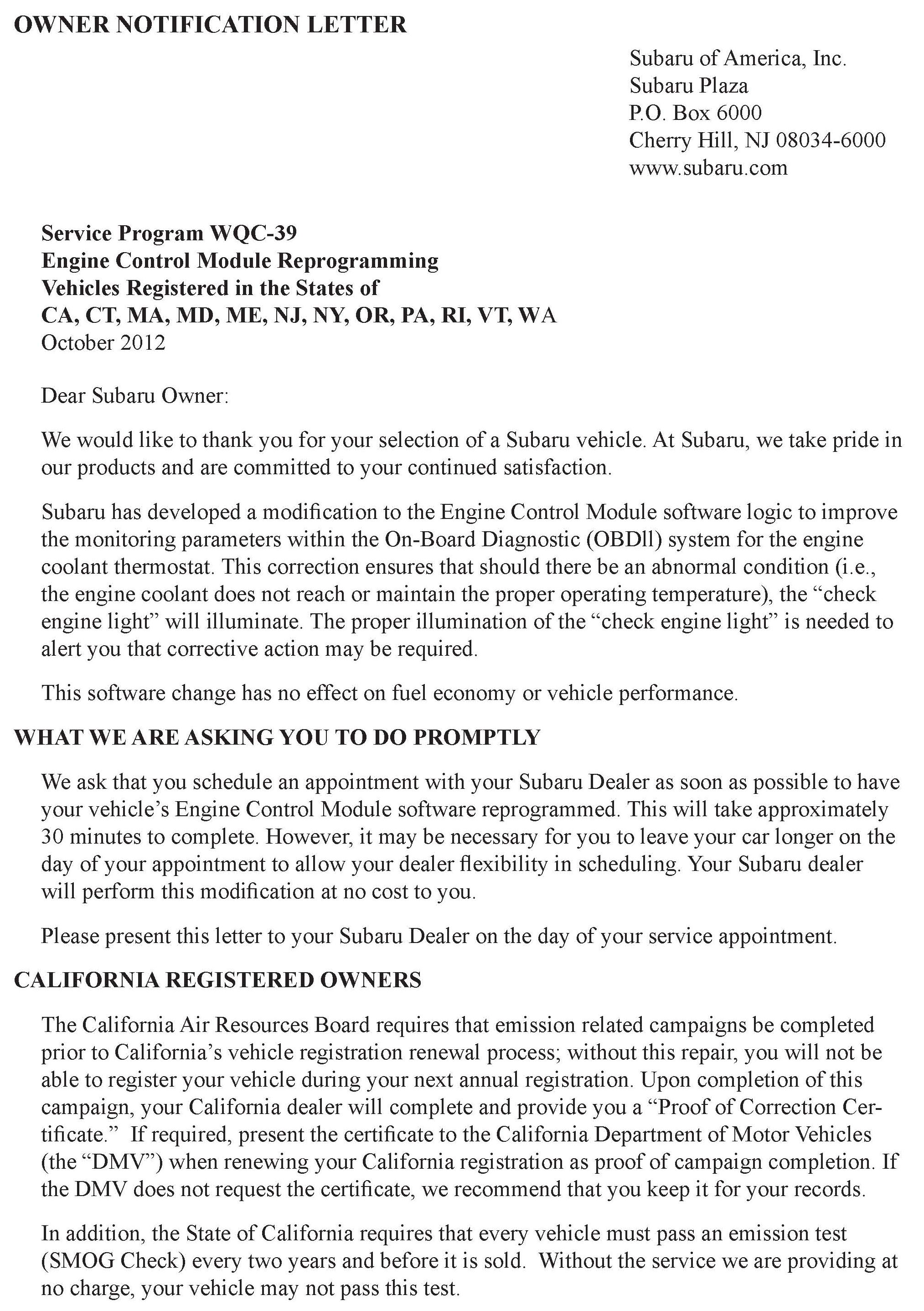 Campaign - ECM Update For OBDII Monitoring Logic
