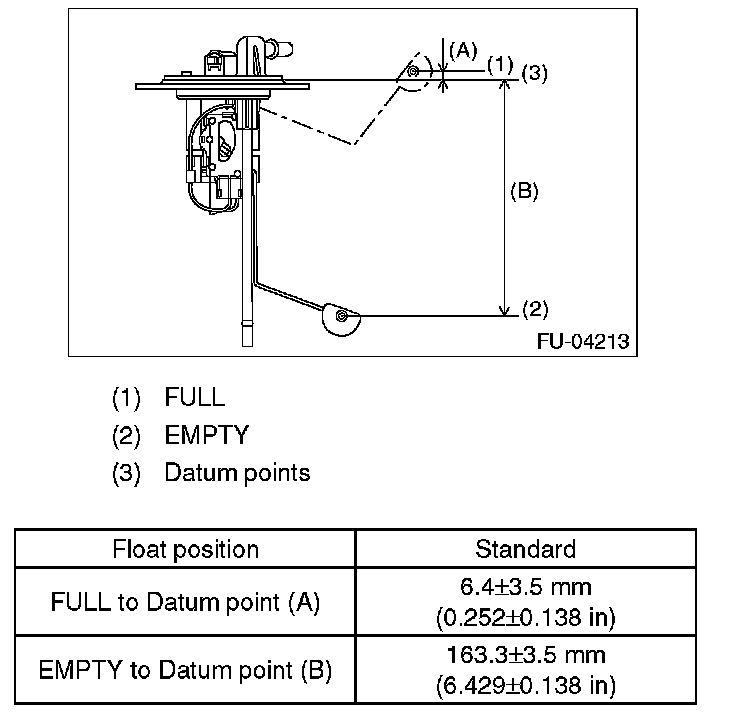 Measure the fuel sub level sensor float position.