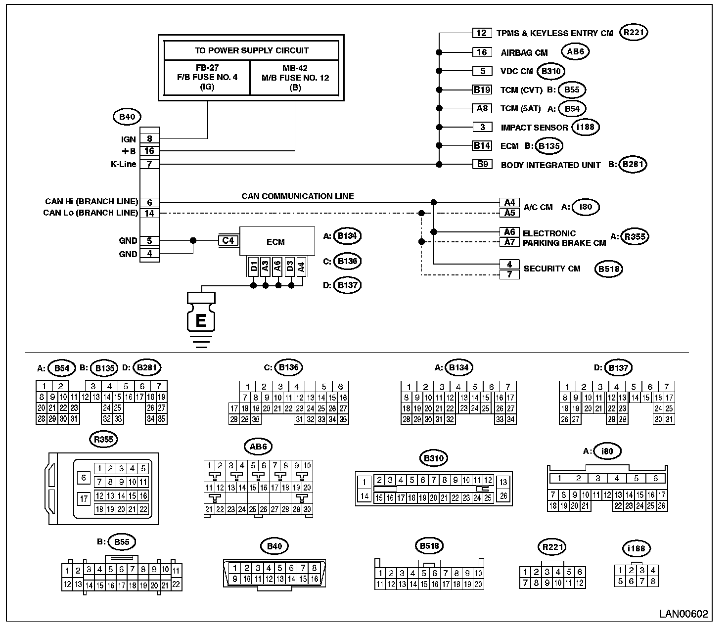 - For the control modules that read trouble code and current data using CAN communication circuit, perform diagnosis following DTCs for CAN communications.