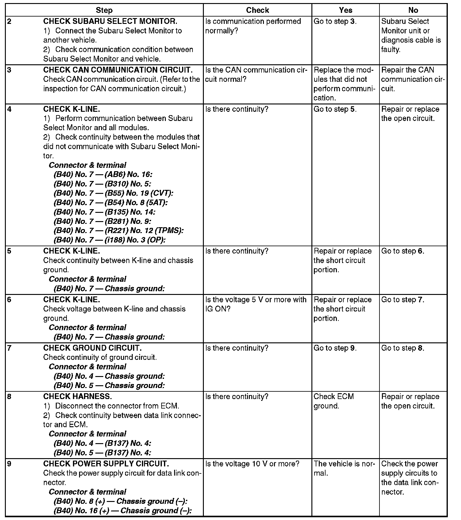 - This is an inspection method for control modules using the Subaru Select Monitor communication line (Kline).
