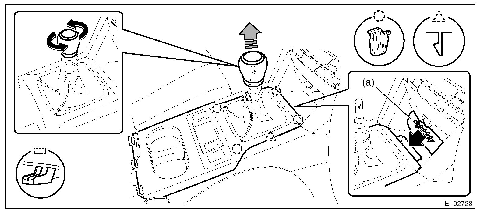 NOTE: Turn over the front center pocket mat (a) and pull up the console front cover from the slit.