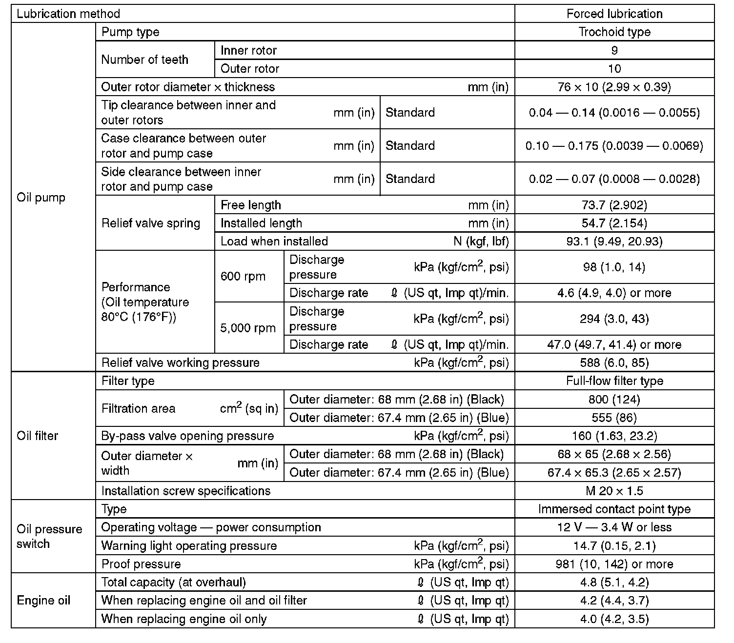 SAE viscosity No.: 30, 40, 10W-50, 20W-40, 20W-50