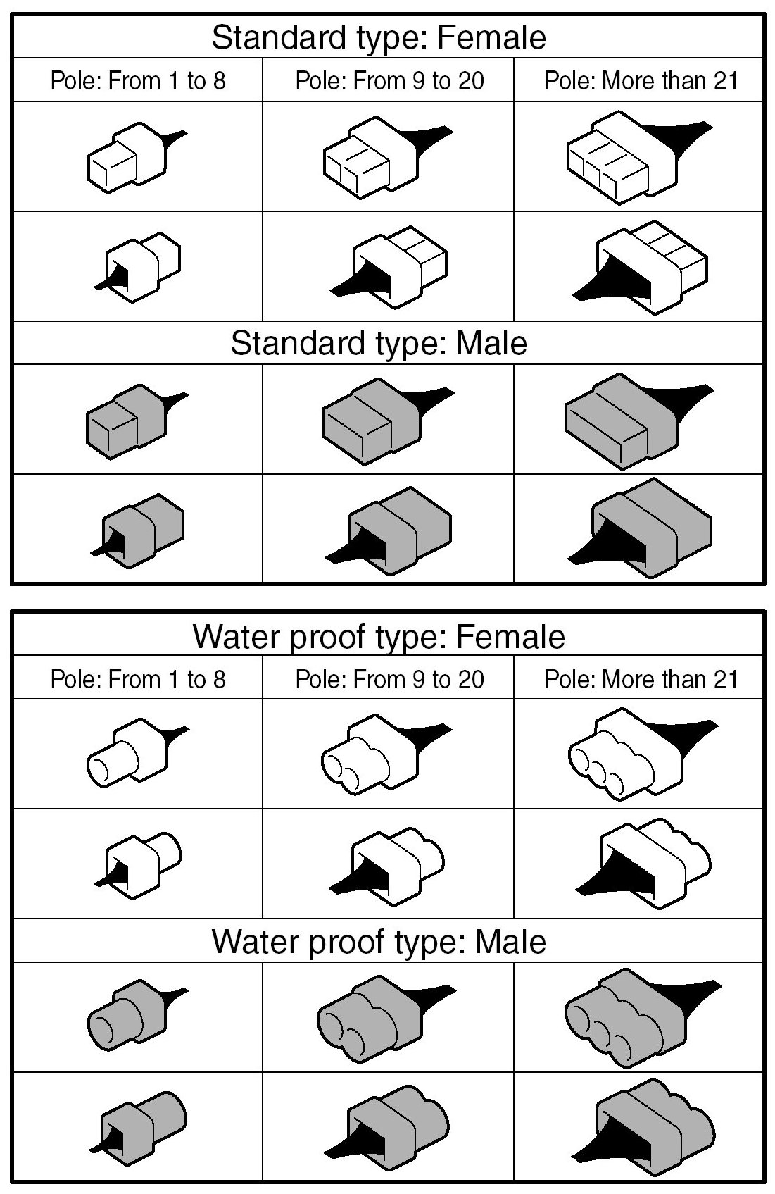 A number of connector symbols are used in each wiring diagram to easily identify the wiring harness connectors.