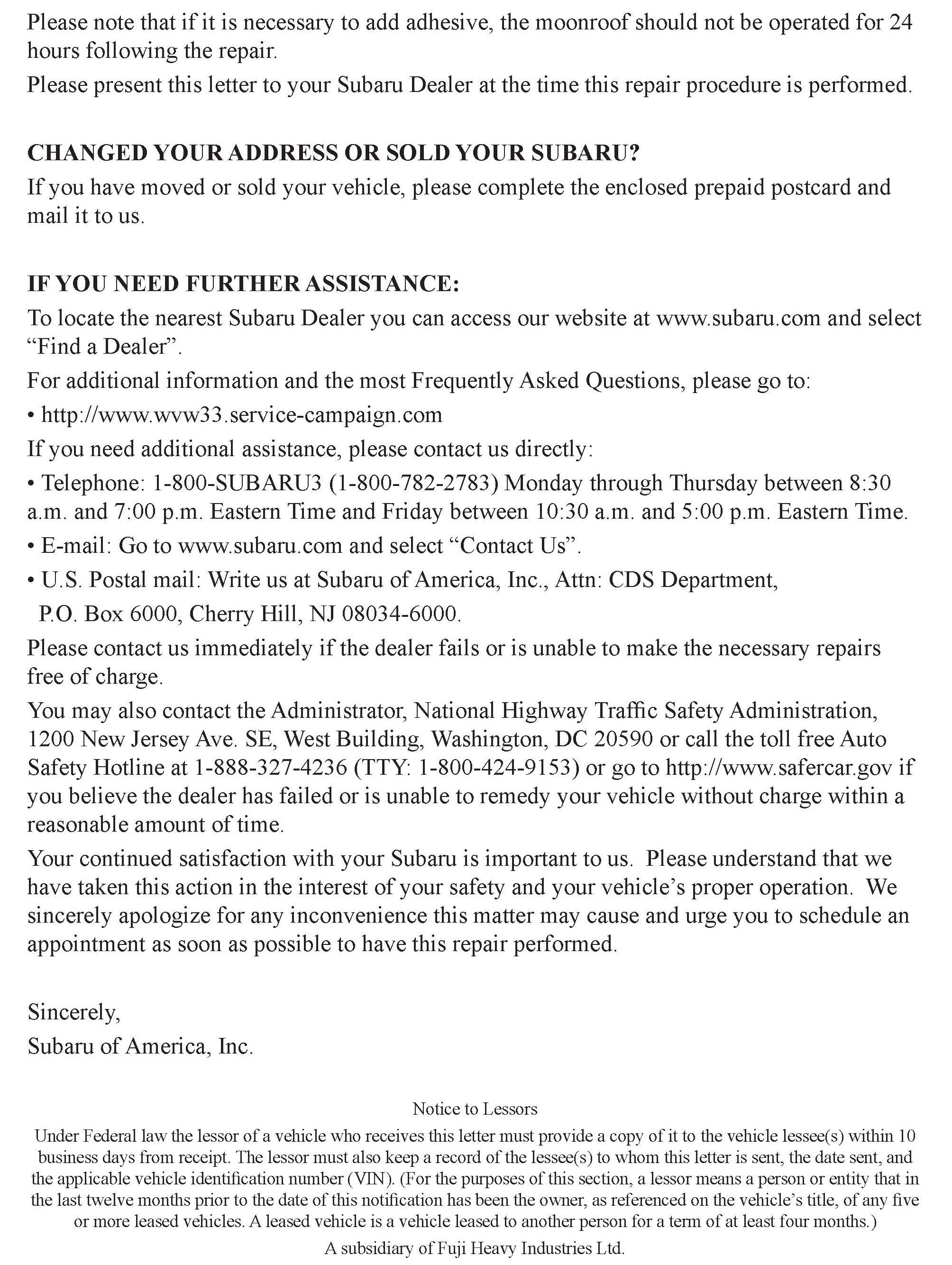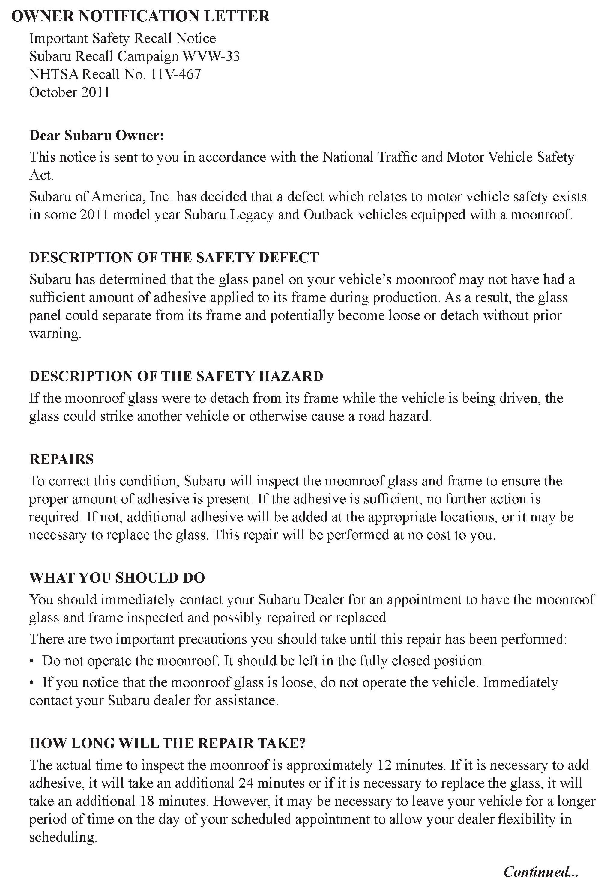 Recall - Potential Sunroof Glass Panel Detachment