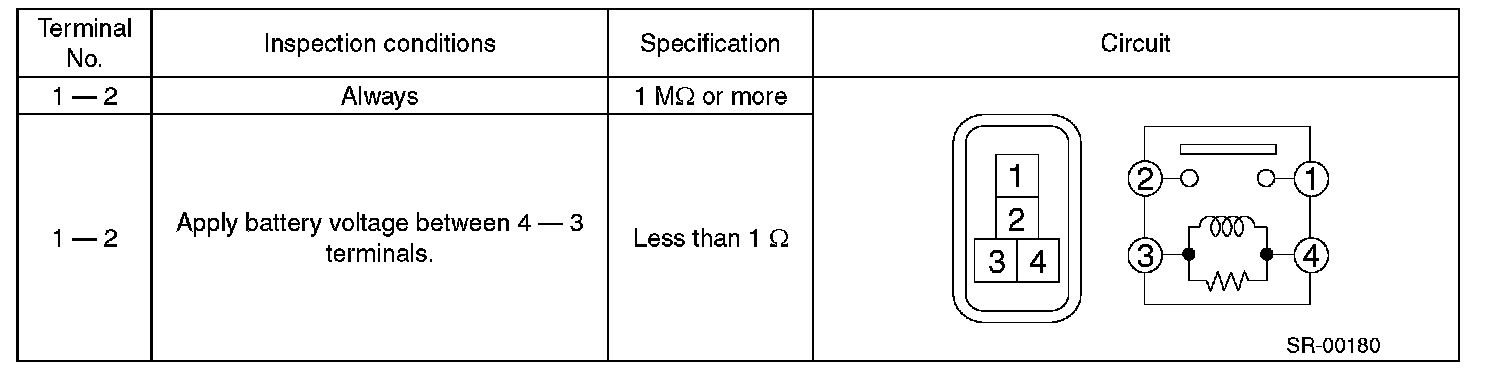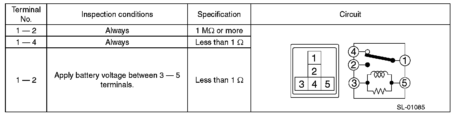 2. Replace the relay if the inspection result is not within the standard value.