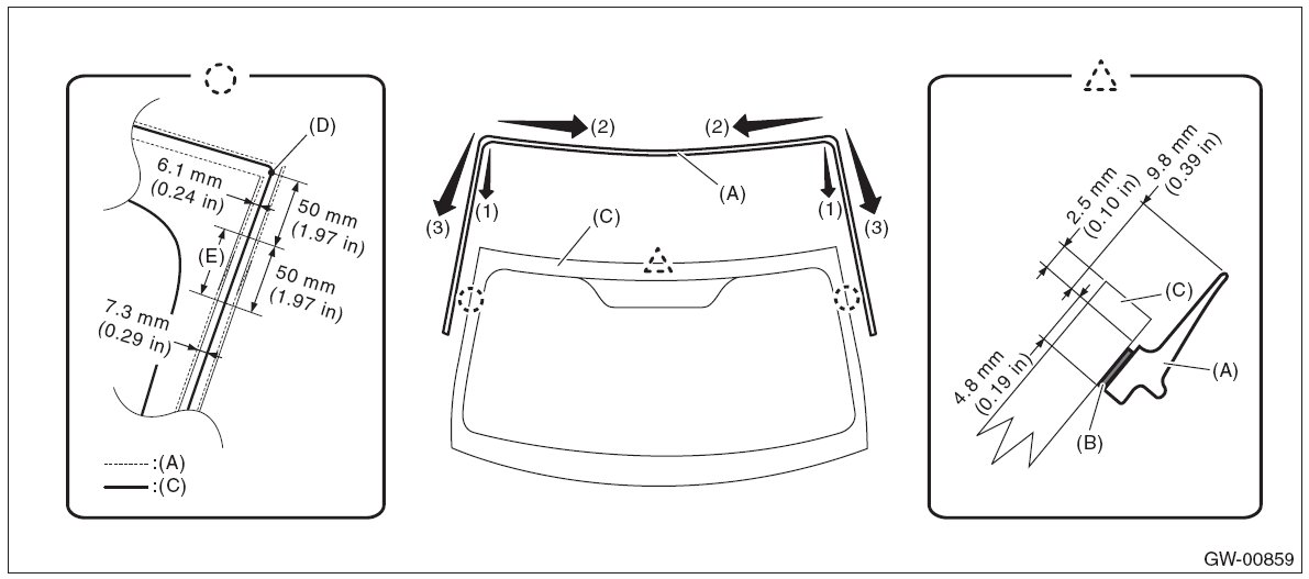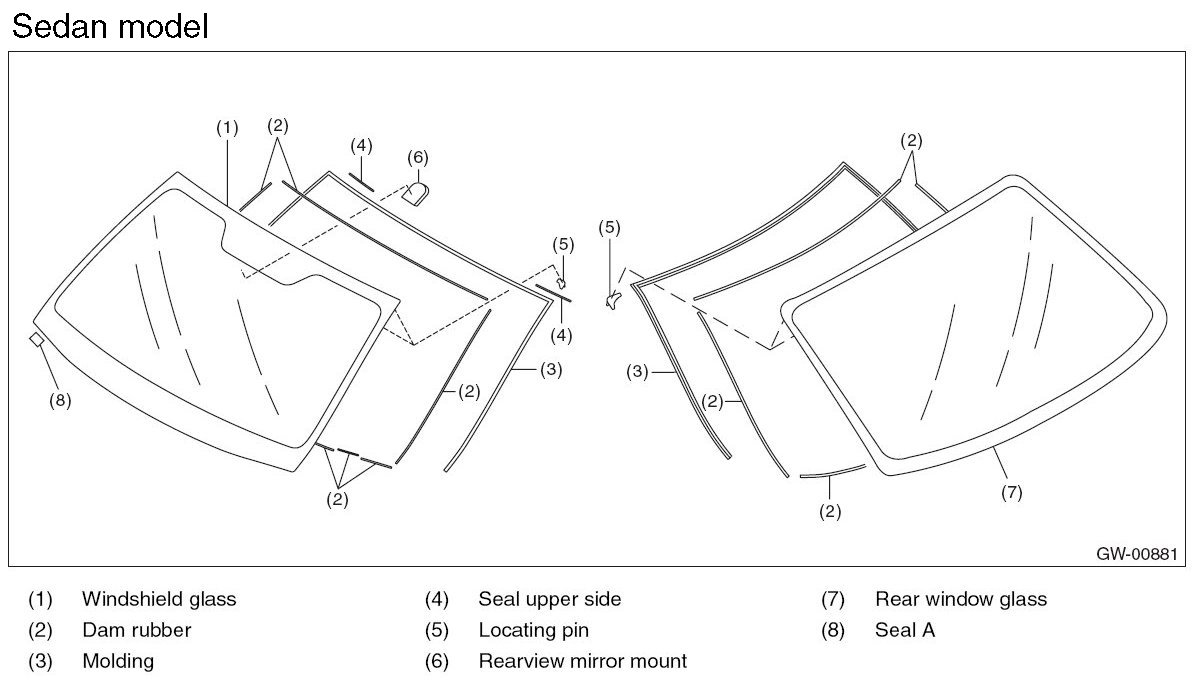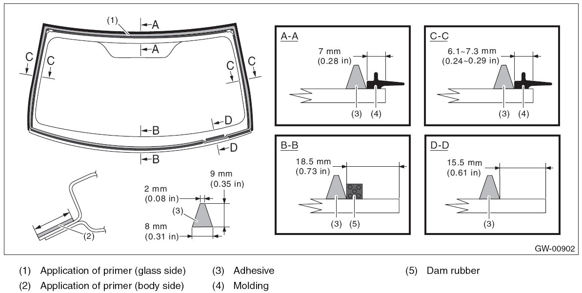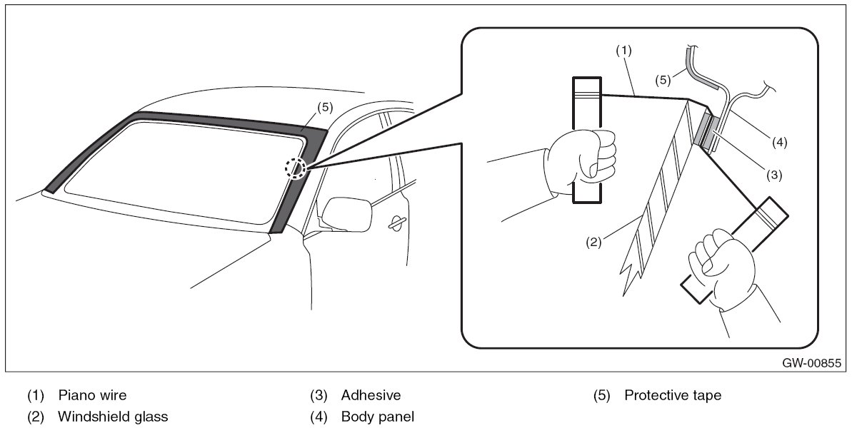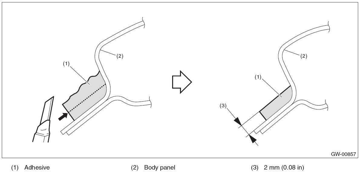 - For minimum drying time and vehicle standing time before driving after bonding, follow instructions or instruction manual from the adhesive manufacturer.