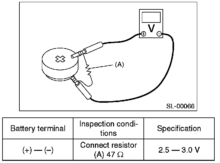 2. Replace the battery if the inspection result is not within the standard value. (Use CR1620 or equivalent.)
