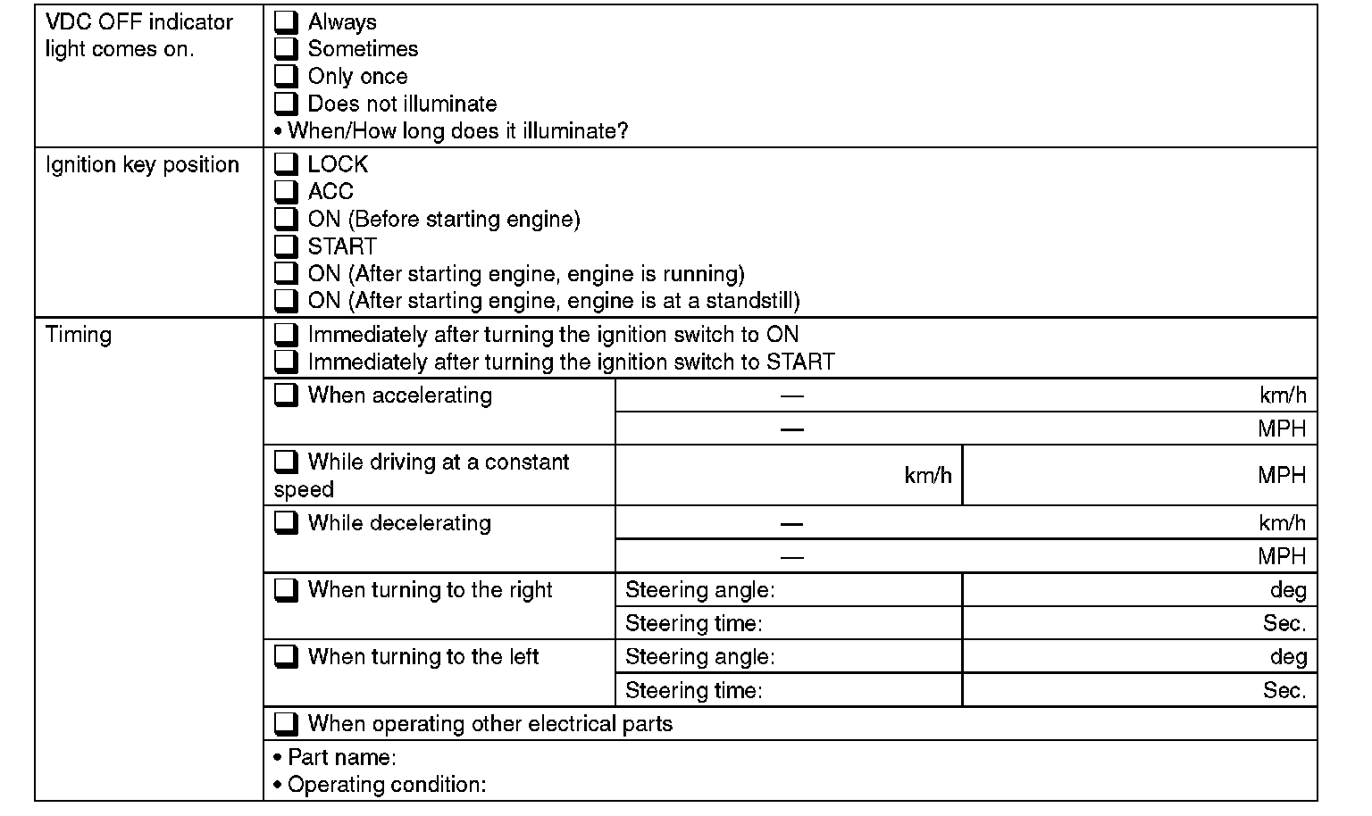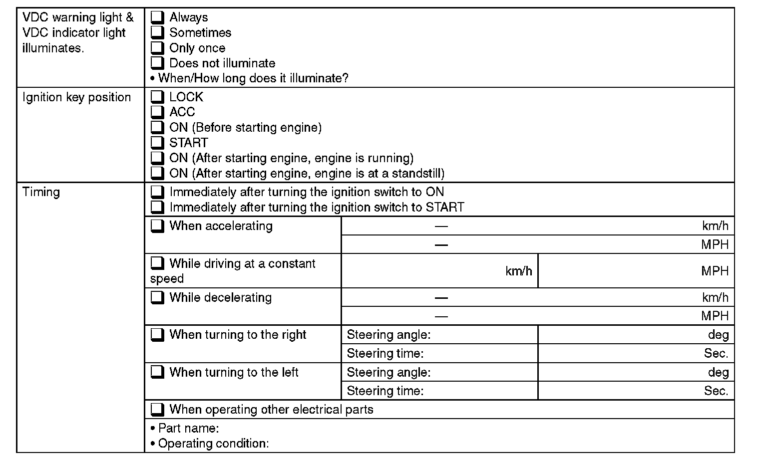 STATE OF VDC WARNING LIGHT & VDC INDICATOR LIGHT