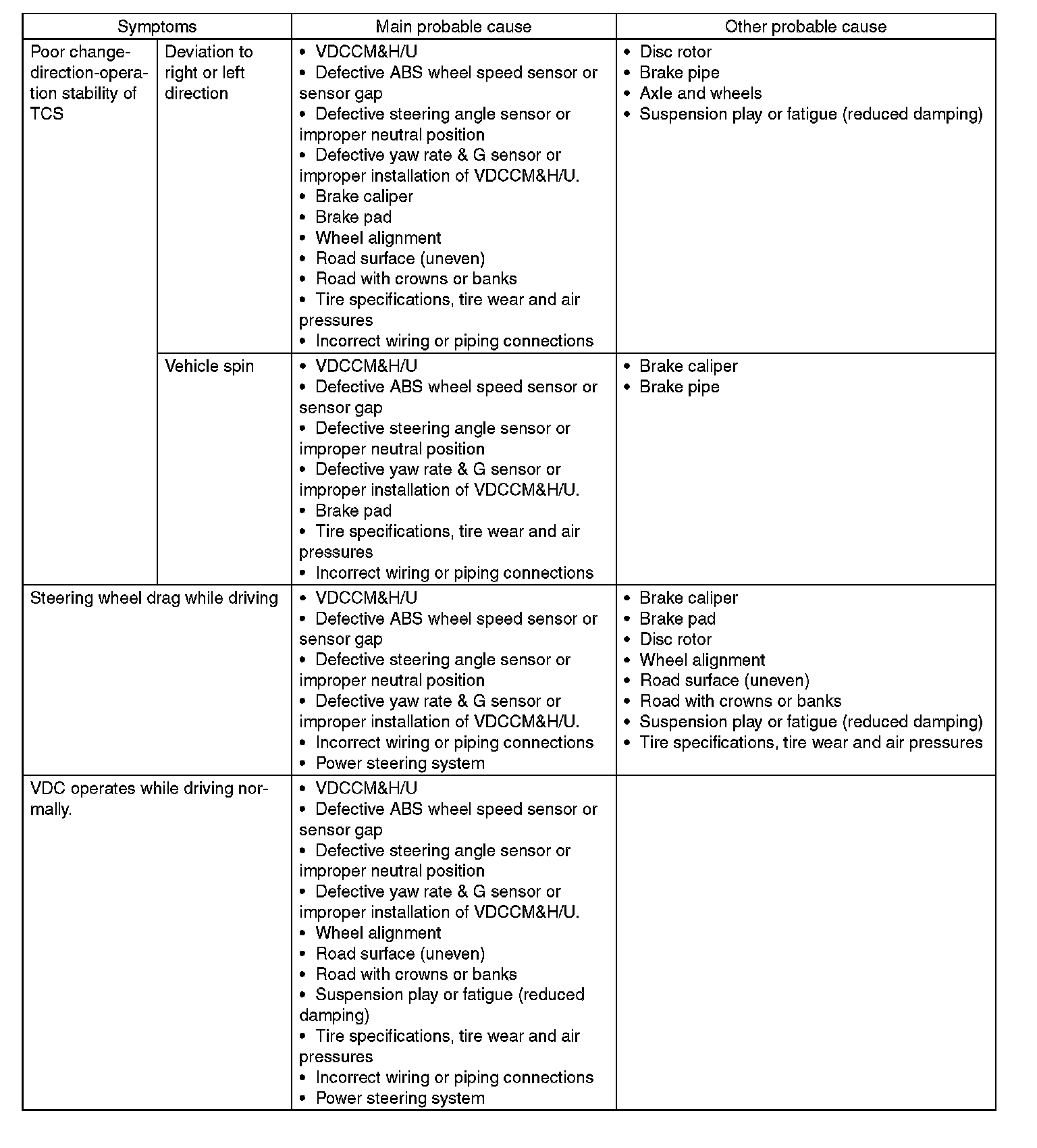 General Diagnostic Table