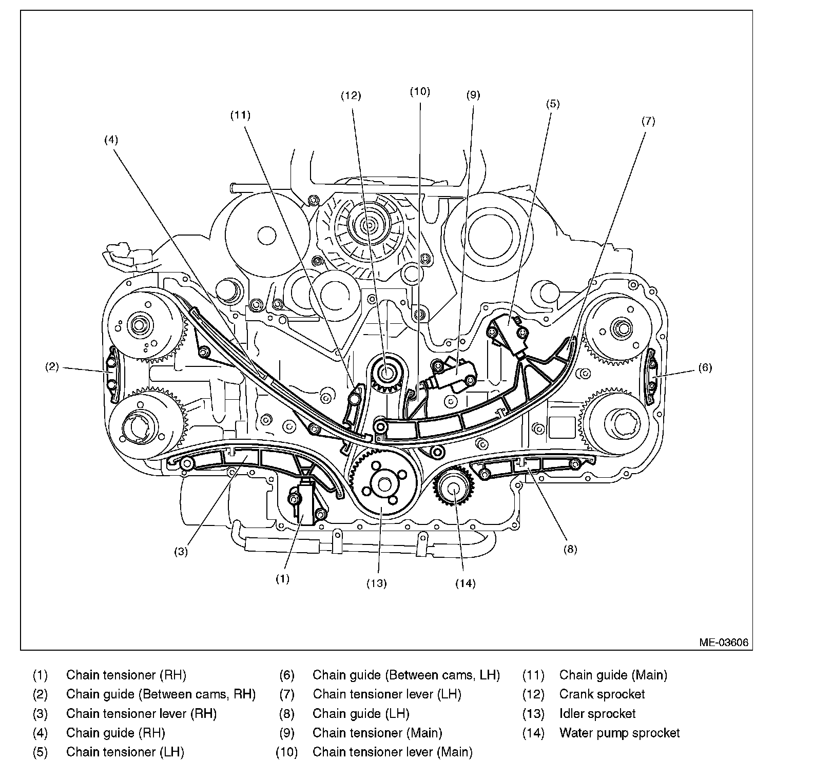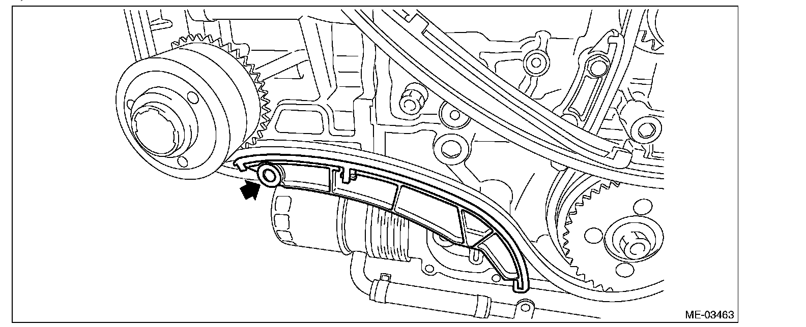 14) Remove the chain guide (LH).