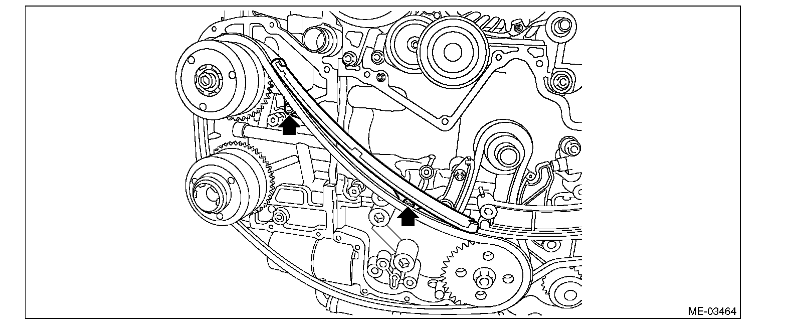 ^ Apply engine oil to all component parts of the timing chain.