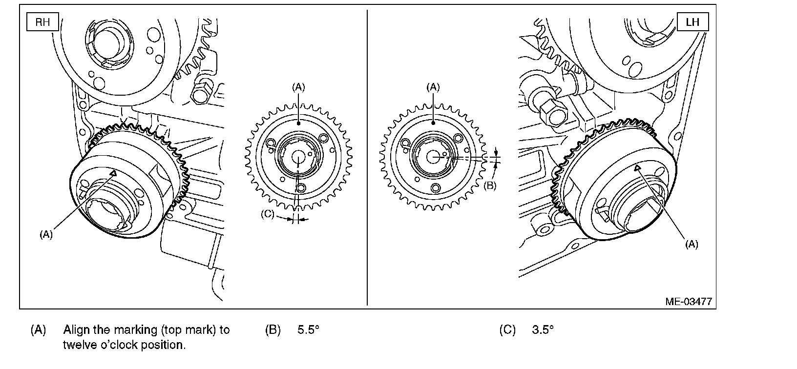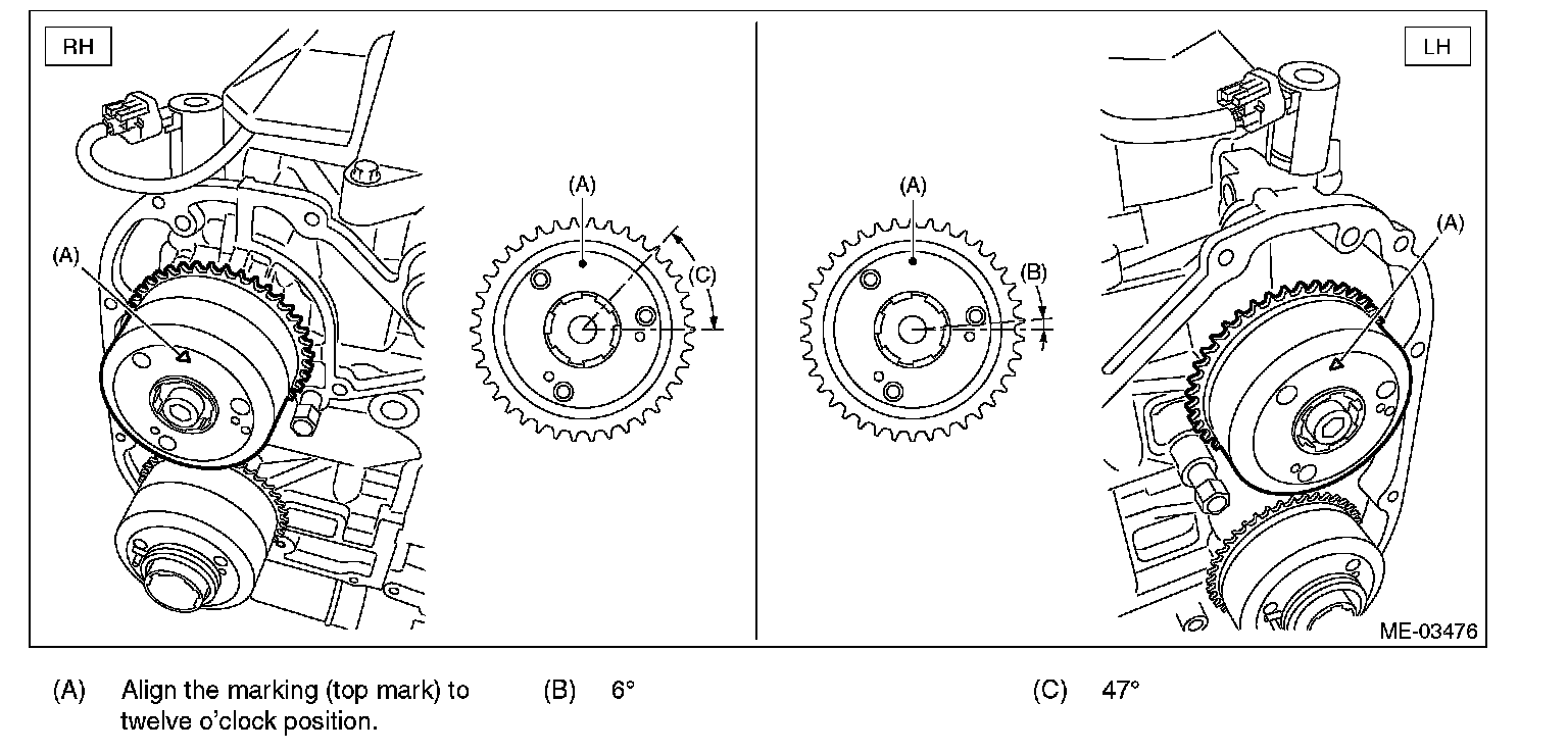 4) Align the intake cam sprocket to twelve o'clock position as shown in the figure.
