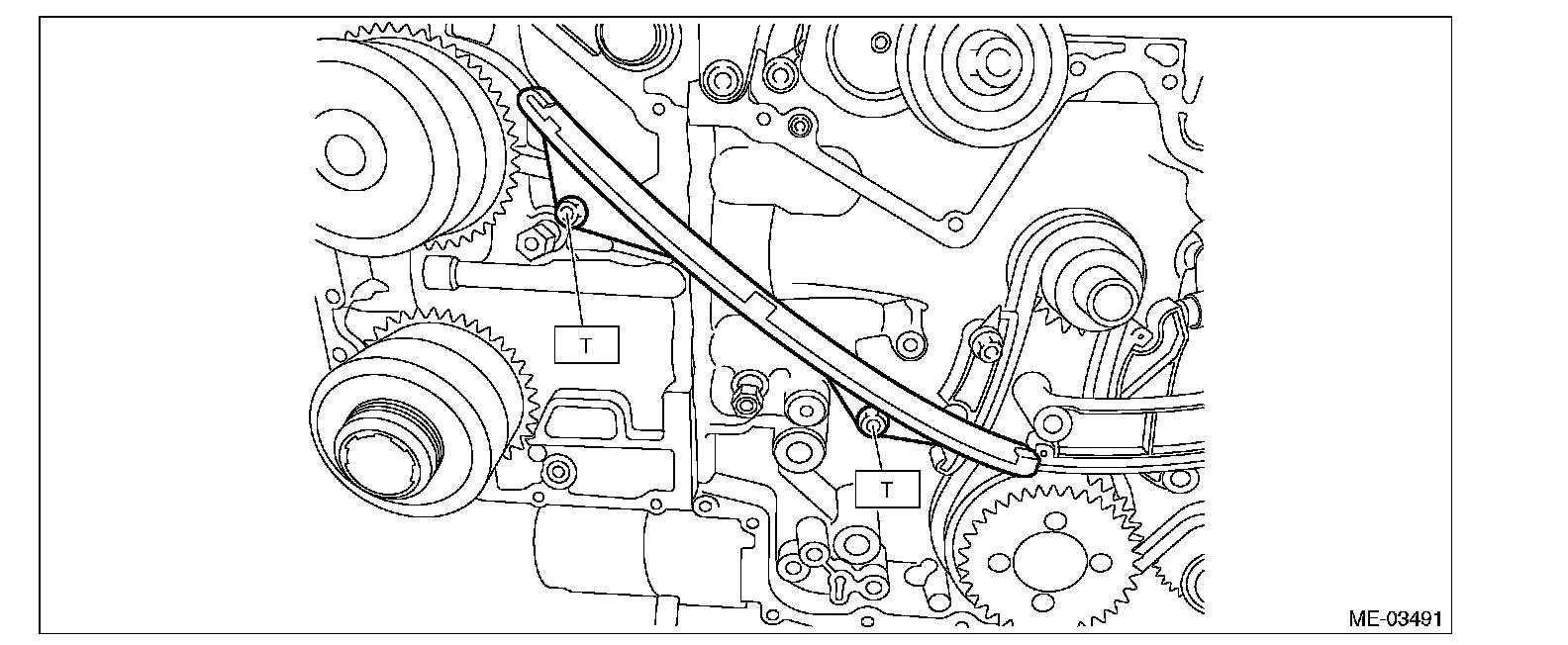 13) Install timing chain (LH).