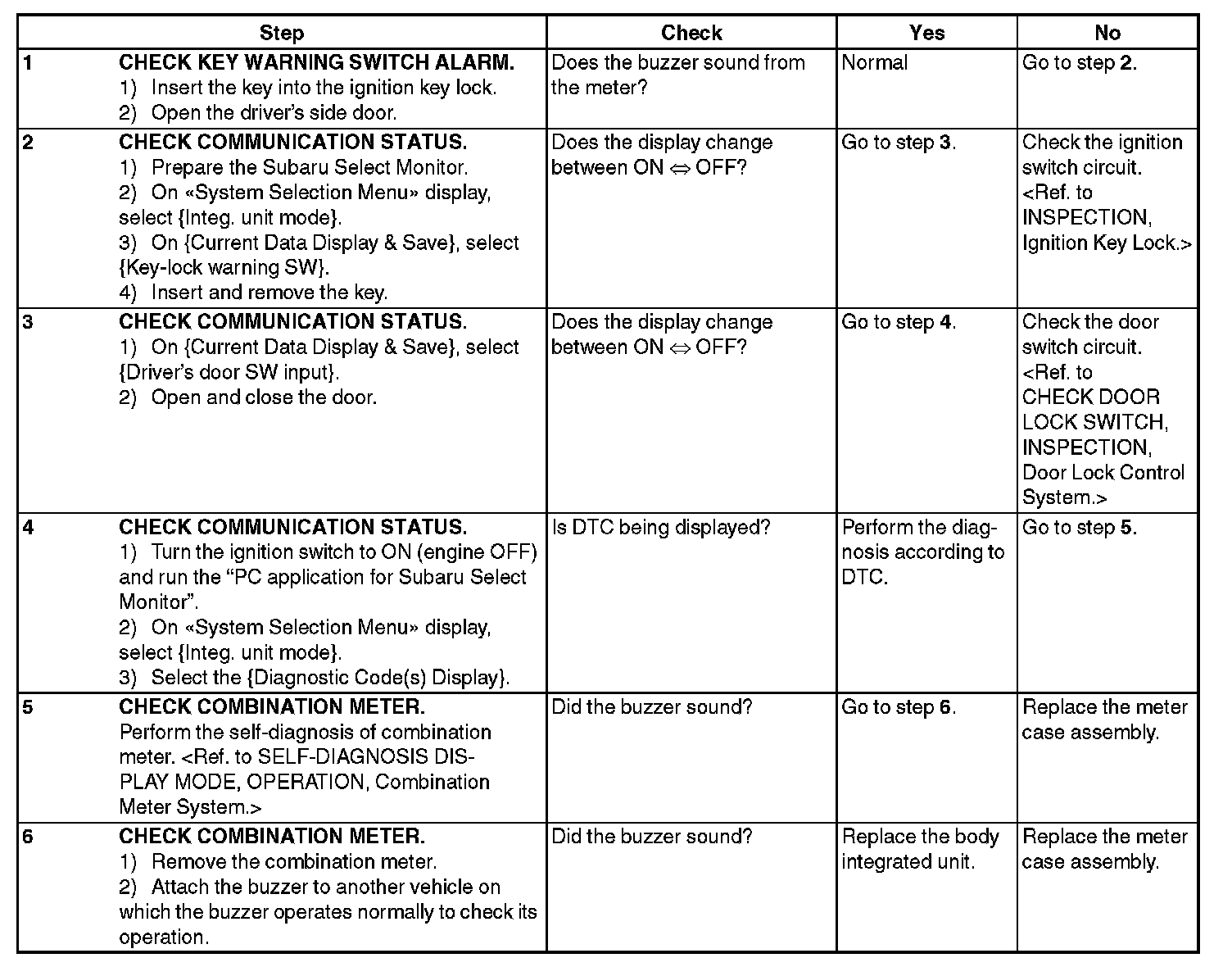 CHECK WARNING BUZZER FOR KEY LEFT IN IGNITION.