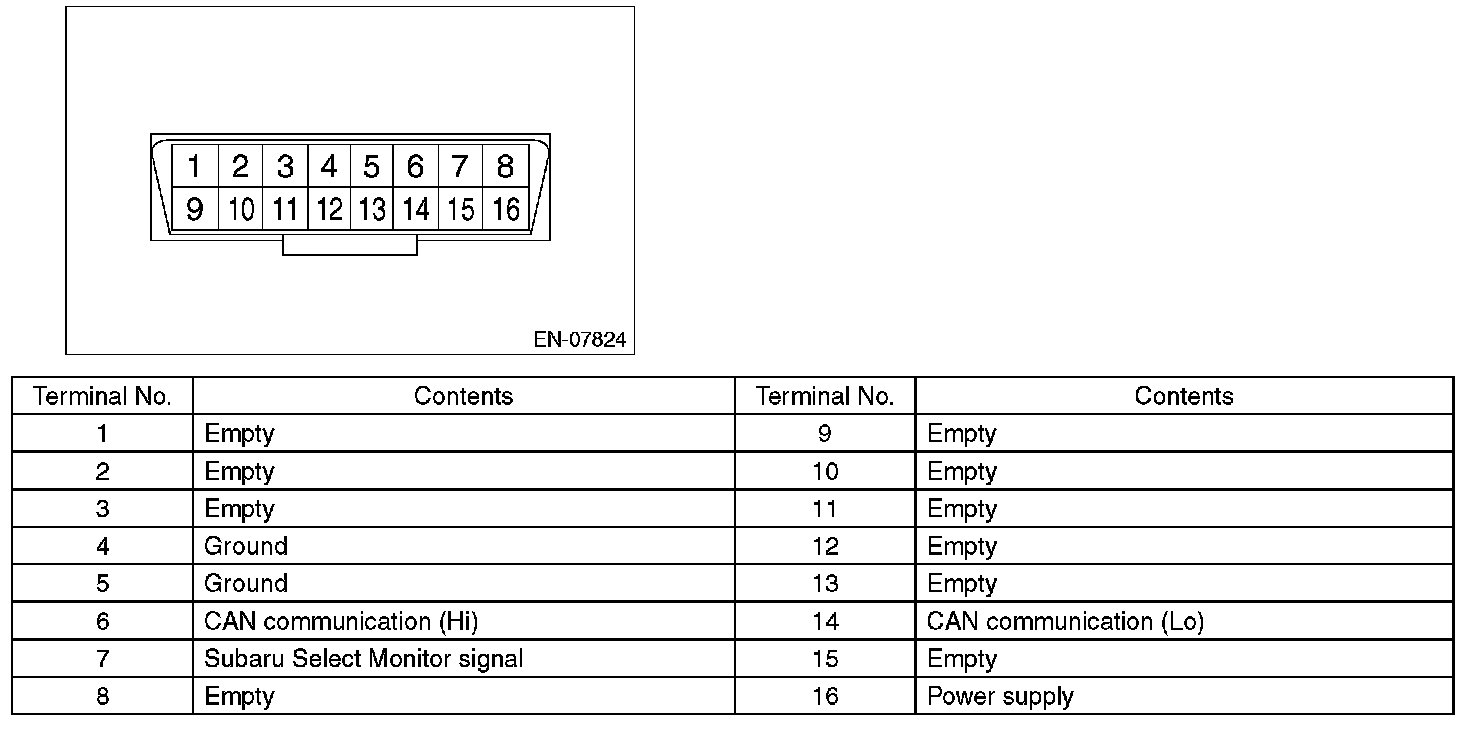 CAUTION: Do not connect any scan tools other than Subaru Select Monitor or general scan tool because the circuit for Subaru Select Monitor may be damaged.