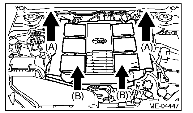 2. Lift up the front side holding two positions (B) while moving it in the forward direction of the vehicle.