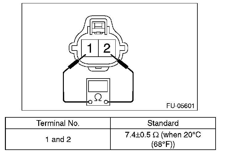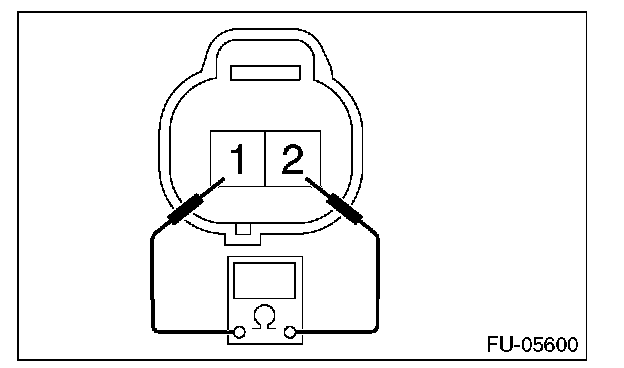2. Measure the resistance between the oil flow control solenoid valve terminals.