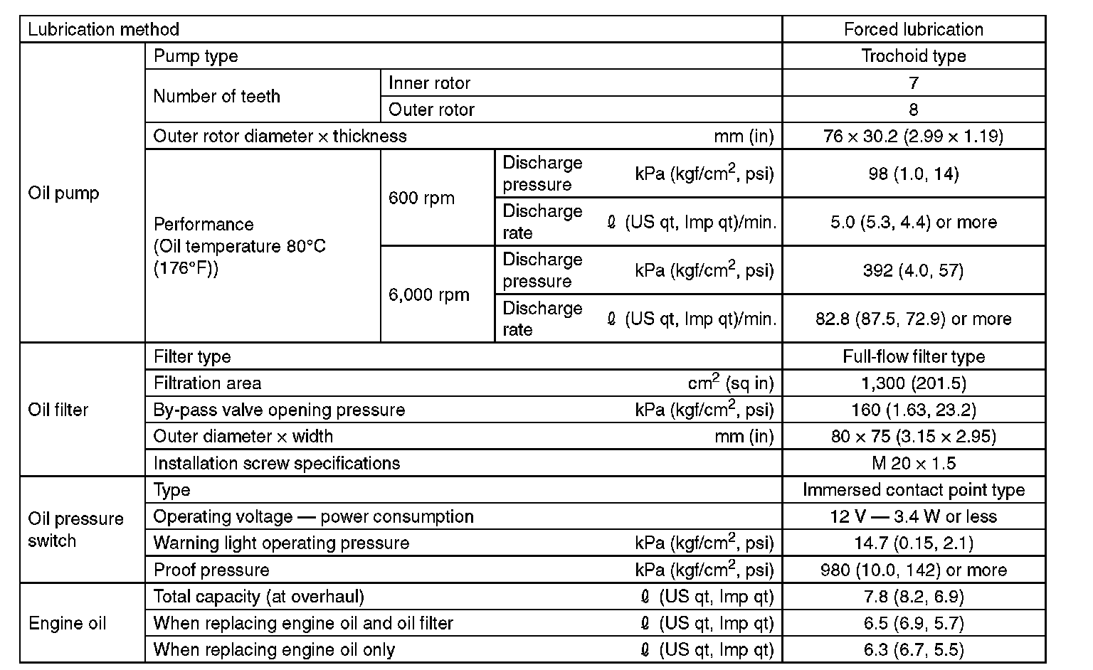 SAE viscosity No.: 30, 40, 10W-50, 20W-40, 20W-50