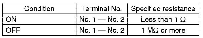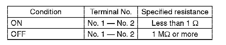 (2) Measure the resistance between terminal 1 and 2 of the switch. If the resistance is not at the standard value, replace the switch.