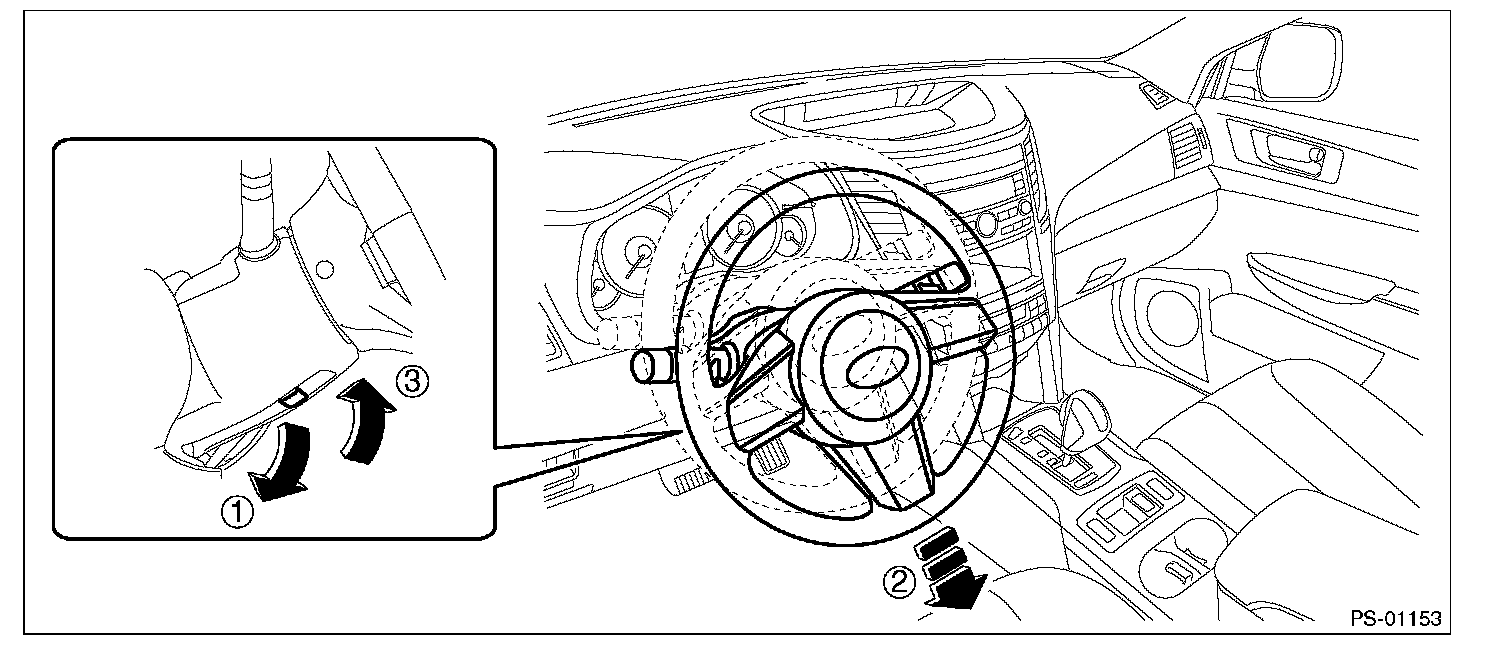 2) Adjust the tilt position of the steering column to the lowest position and lock the tilt lever.