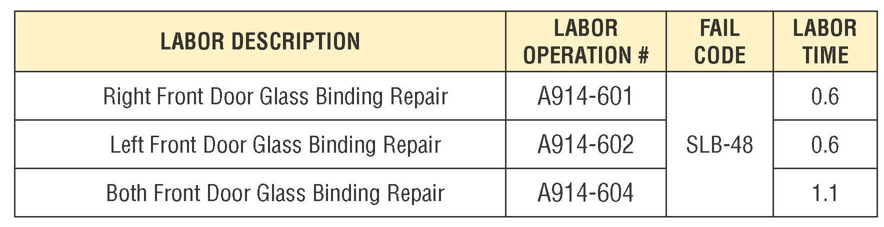 This Bulletin provides an inspection and repair procedure to address a misalignment of the rear upper and lower window sash which may cause the front door glass to bind or move slowly when opening or closing. This condition may also cause erratic operation of the power window Auto-Up feature (if equipped). In some cases, when closing the window, the system may mis-interpret the binding condition and activate the pinching hazard prevention feature and reverse the motor's direction.