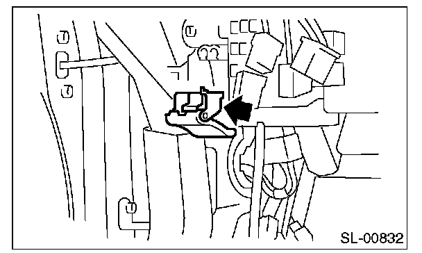 2. Remove the lower inner trim, rear quarter trim and floor mat on the driver's side. Remove the clip holding the cable.