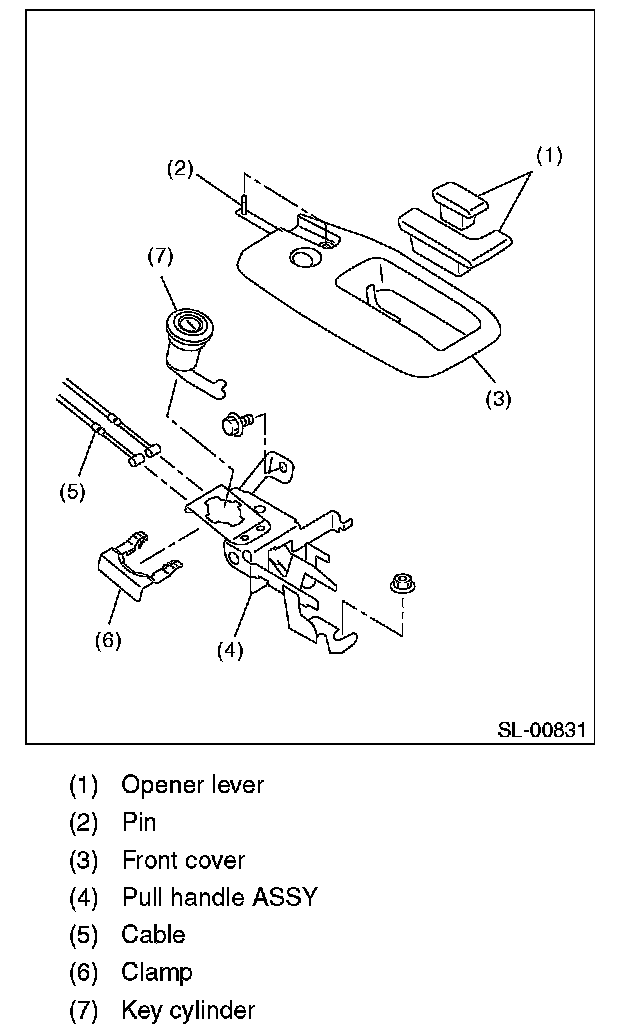 7. Remove clamp (6) to remove the key cylinder (7).