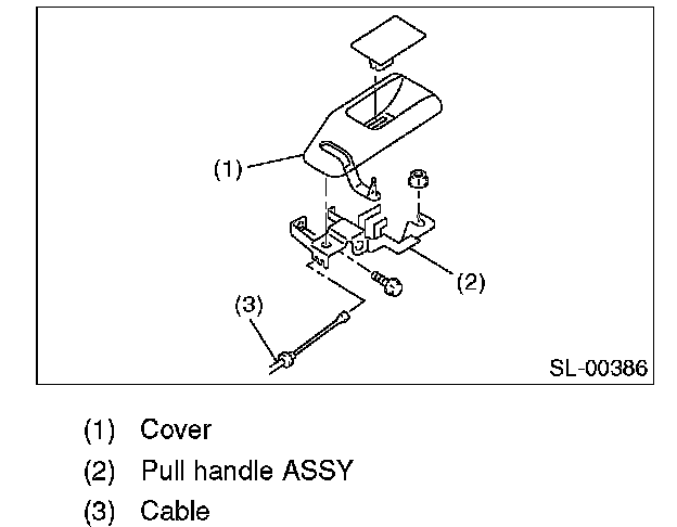 4. Remove the bolt and nut, and remove the pull handle assembly (2).