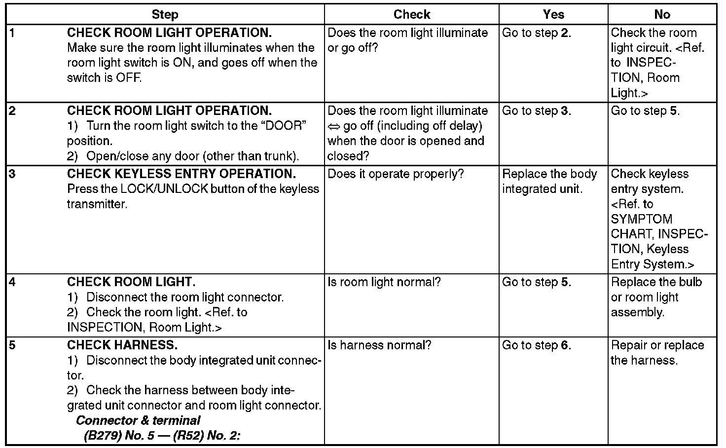 Check Room Light Operation