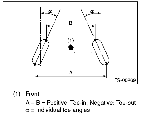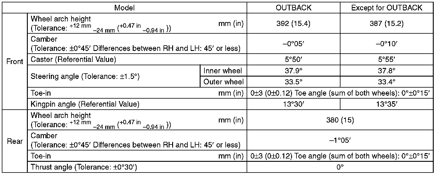 - Other items indicated in the specifications is not equipped with adjustment mechanisms. If other items exceed specifications, check the suspension parts and connections for deformation. If defective, replace with new parts.