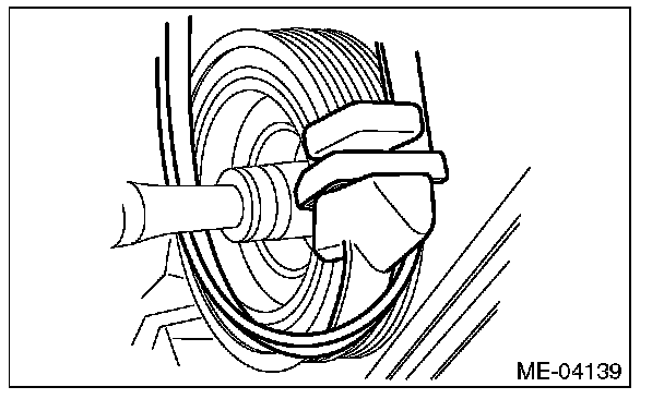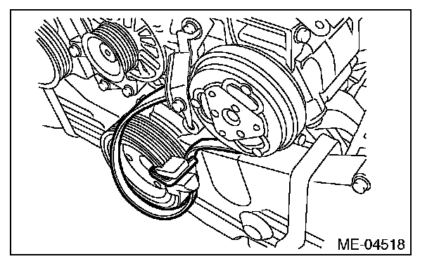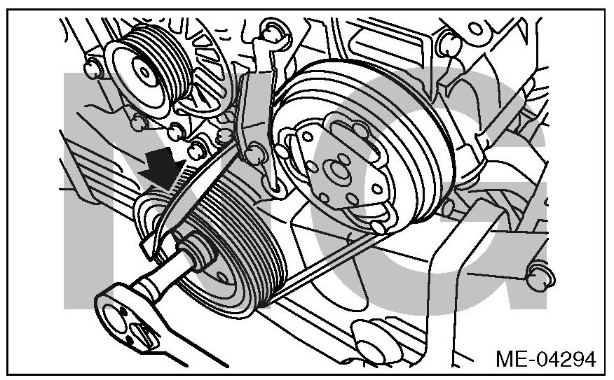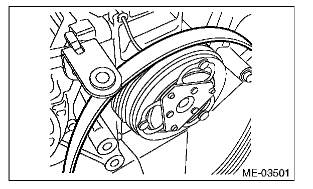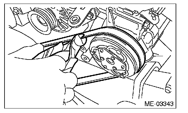 (2) The rib of the rear side belt is securely placed on the groove of the A/C compressor pulley.
