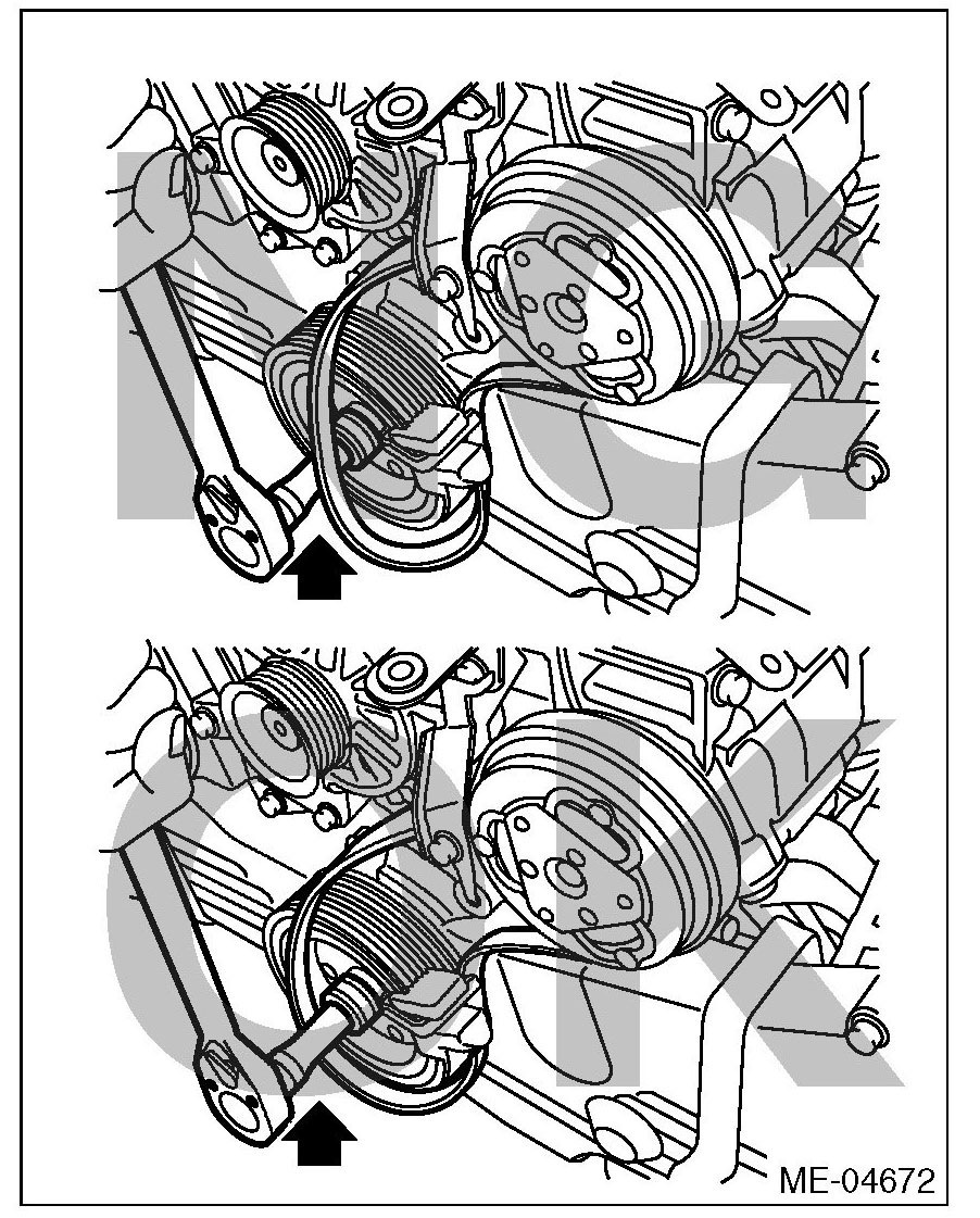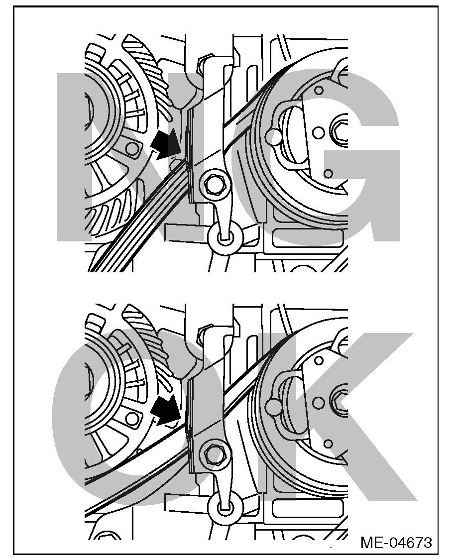 ^ If the front side belt tension is higher, unexpected force is generated at the power steering oil pump, generator and crankshaft bearing, causing abnormal noise due to abnormal wear of the bearing.