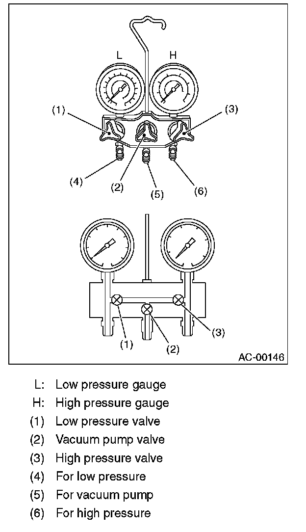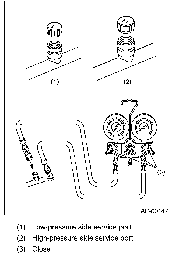 3. Make sure the valves on low/high pressure sides of manifold gauge set are fully closed.