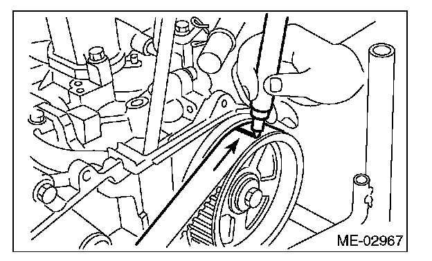 ^ Be careful not to let oil, grease or coolant contact the timing belt. Remove quickly and thoroughly if this happens.