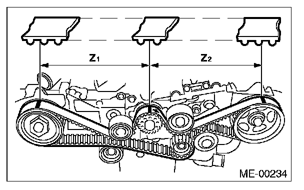 1) Check the timing belt teeth for breaks, cracks or wear. If any fault is found, replace the timing belt.