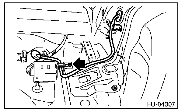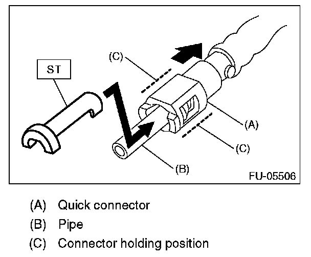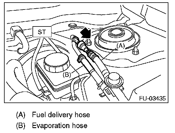 2. Disconnect the quick connector of the fuel delivery hose by pushing the ST in the direction of the arrow.