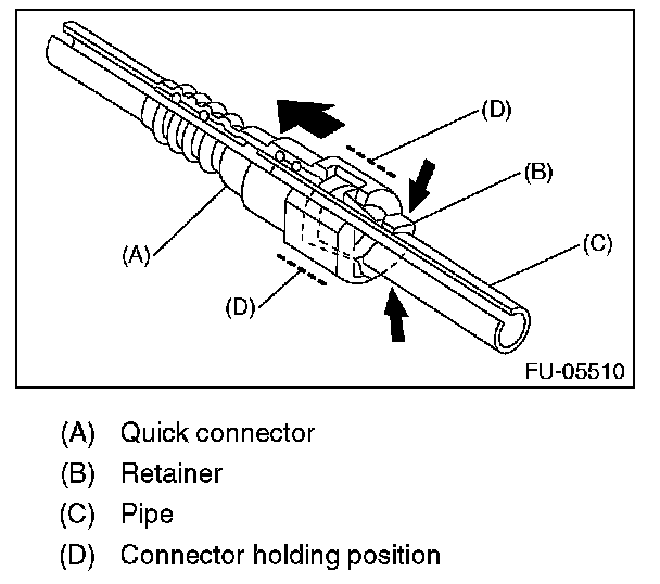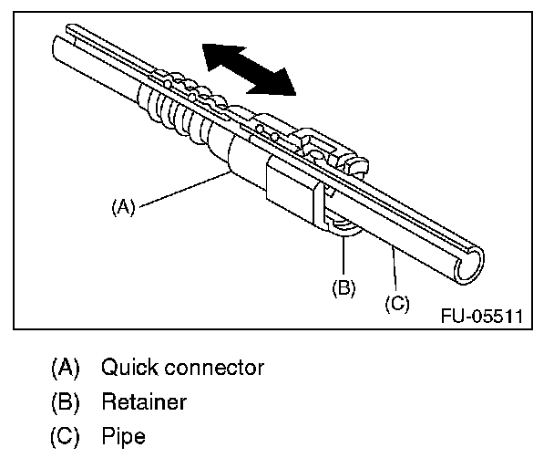 1. Push the retainer in the direction of the arrow, disconnect the quick connector from pipe.