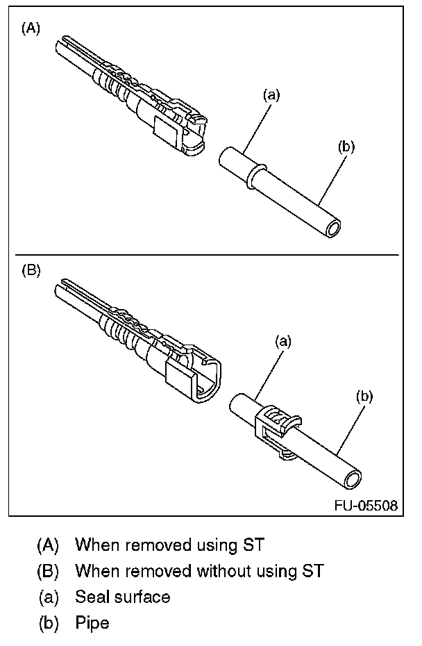 - If the connector and pipe are sticking to each other, push and pull the connector with ST pushed, and then pull the connector after it starts moving freely.