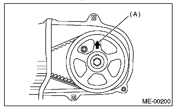 When the arrow mark (A) on cam sprocket LH is at the top position, the #1 cylinder piston is at top dead center of the compression stroke.