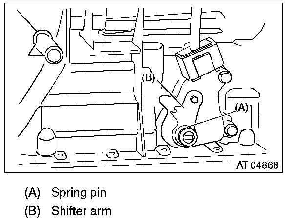 7) Using the ST, remove the spring pin and remove the shifter arm.