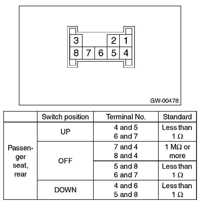 3. Replace the power window main switch if the inspection result is not within the standard value.