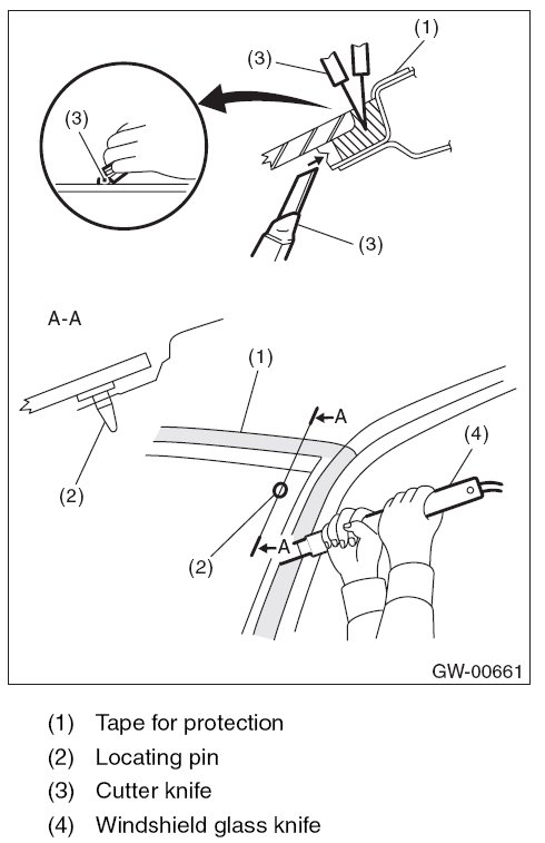 - Cutting of adhesive part shall be started with wider gap between windshield glass and body.