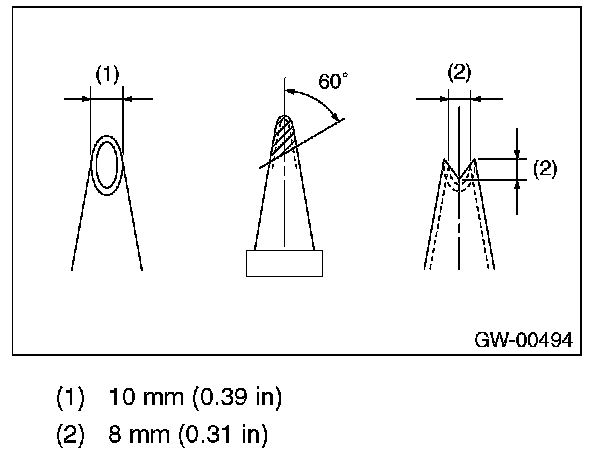 1. Fabricate the cartridge nozzle tip as shown and set the sealant gun with the adhesive.